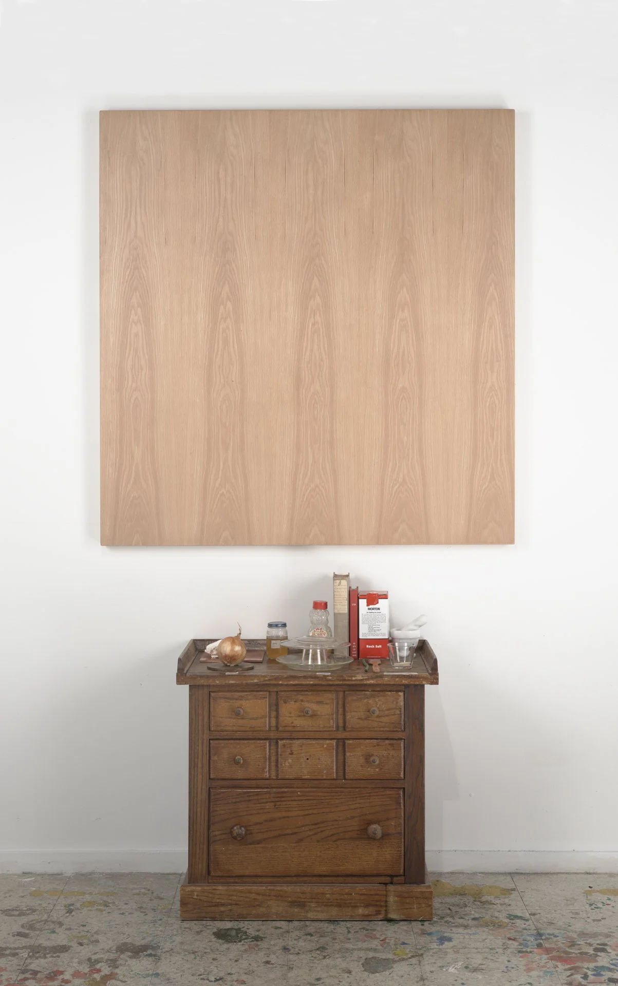In the minimalist Flemish-less painting series, all the steps of a flemish painting—except for the painting itself—were extensively researched and painstakingly carried out to the best of my ability. From the construction of the oak panel to the many fine layers of rabbit skin gesso to the creation of the unstable pigment verdigris and the numerous layers of finishing varnish, this series explores lost histories and the storied invention of oil painting from Jan Van Eyck to his mysterious sister, Margareta Van Eyck. Out of my research, I discovered that the following words were written on her gravestone: “Herein lies Margareta Van Eyck who did marvelous things in the realm of painting.”